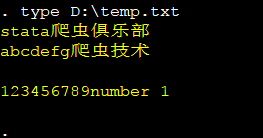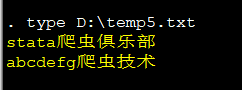 subinfile D:\temp.txt, index("stata") save(D:\temp1.txt) replace //定位到含有“stata”的行,并保存为temp1.txt