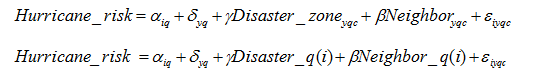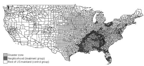 本 文选择飓风着陆作为事件冲击,一场飓风席卷,会给受灾区公司带来巨大的经济损失,也会让飓风风险在这段时间突显。飓风还有以下几个特点:1.美国历史的飓 风数据表明飓风发生的频率基本不变,也就是真实飓风的风险不会变化;2.飓风着陆,不管是时间还是地点,都是随机的,影响范围非常广;3.飓风对于公司和 管理者来说是一个外生事件;4.人们对飓风风险的感知程度是受到距离影响,距离受灾区越近,感知到的飓风风险就越强;相对偏远的地区,对这场飓风可能就没 什么感觉。因此,作者要研究风险突显程度对管理者评估风险的影响,而飓风着陆事件为此提供了理想的自然实验。